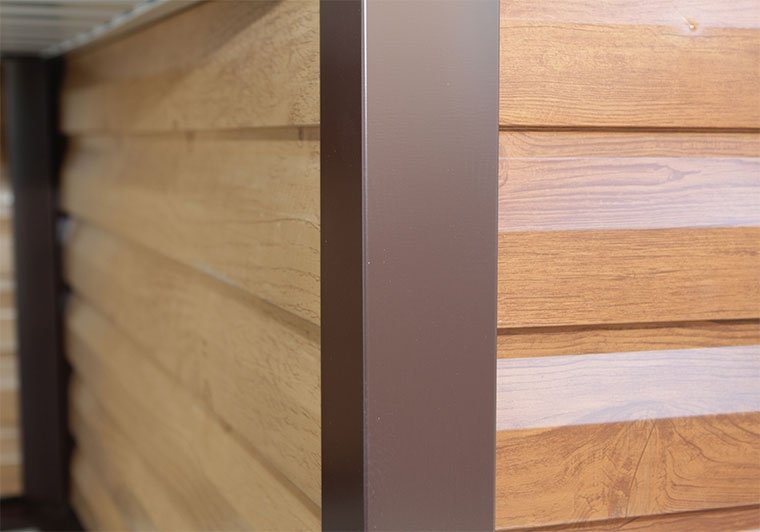 Дополнительной защитой качественной оцинкованной стали, из которой изготовлен сайдинг, металлический является полимерное покрытие. Оно также выполняет декоративную функцию – имитирует цвет натуральной древесины.