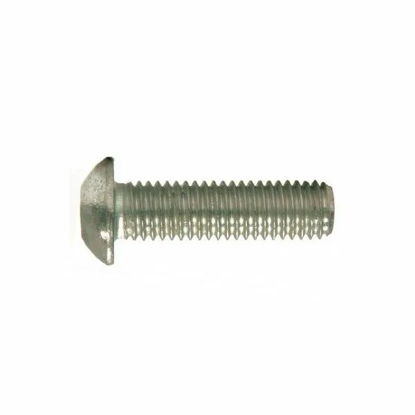 Винт выполнен по европейскому стандарту ISO 7380 в виде цилиндрического стержня с полной резьбой по шпильке (шаг резьбы составляет 1,25). Стержень имеет плоский конец, а с другой стороны – головку полукруглой формы. На головке в центре сверху имеется глубокий шестигранный шлиц под соответствующий ключ-шестигранник (либо под шуруповёрт с шестигранной насадкой-битой), а нижняя часть головки (плоская) содержит специальные буртики. Шлиц участвует в затяжке крепежа. Буртики необходимы для обеспечения большей прижимной способности головки болта к скрепляемой поверхности. Благодаря им прижим деталей будет максимальным и без зазоров. Установка производится либо в резьбовое отверстие, либо в предварительно подготовленное сквозное отверстие с помощью накручивания гайки необходимого диаметра.